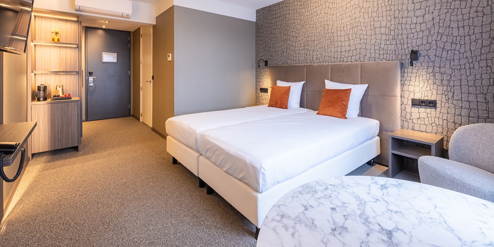 Our Comfort rooms offer everything you need for a pleasant stay in North Limburg. Enjoy a good night's sleep on the two comfortable single beds and make use of amenities such as coffee and tea facilities, air conditioning, an LCD TV, a seating area, a shower and free Wi-Fi.